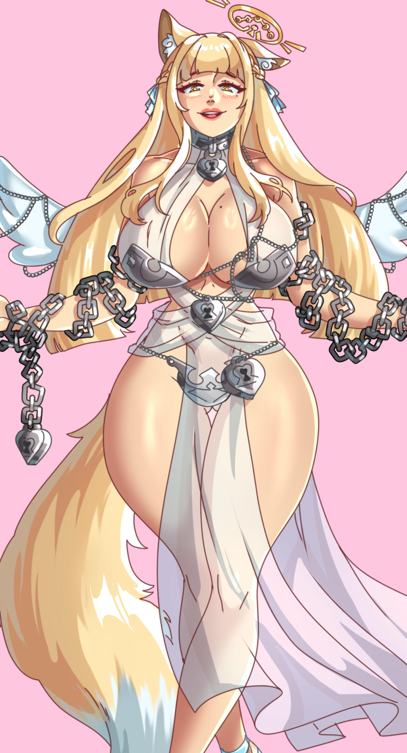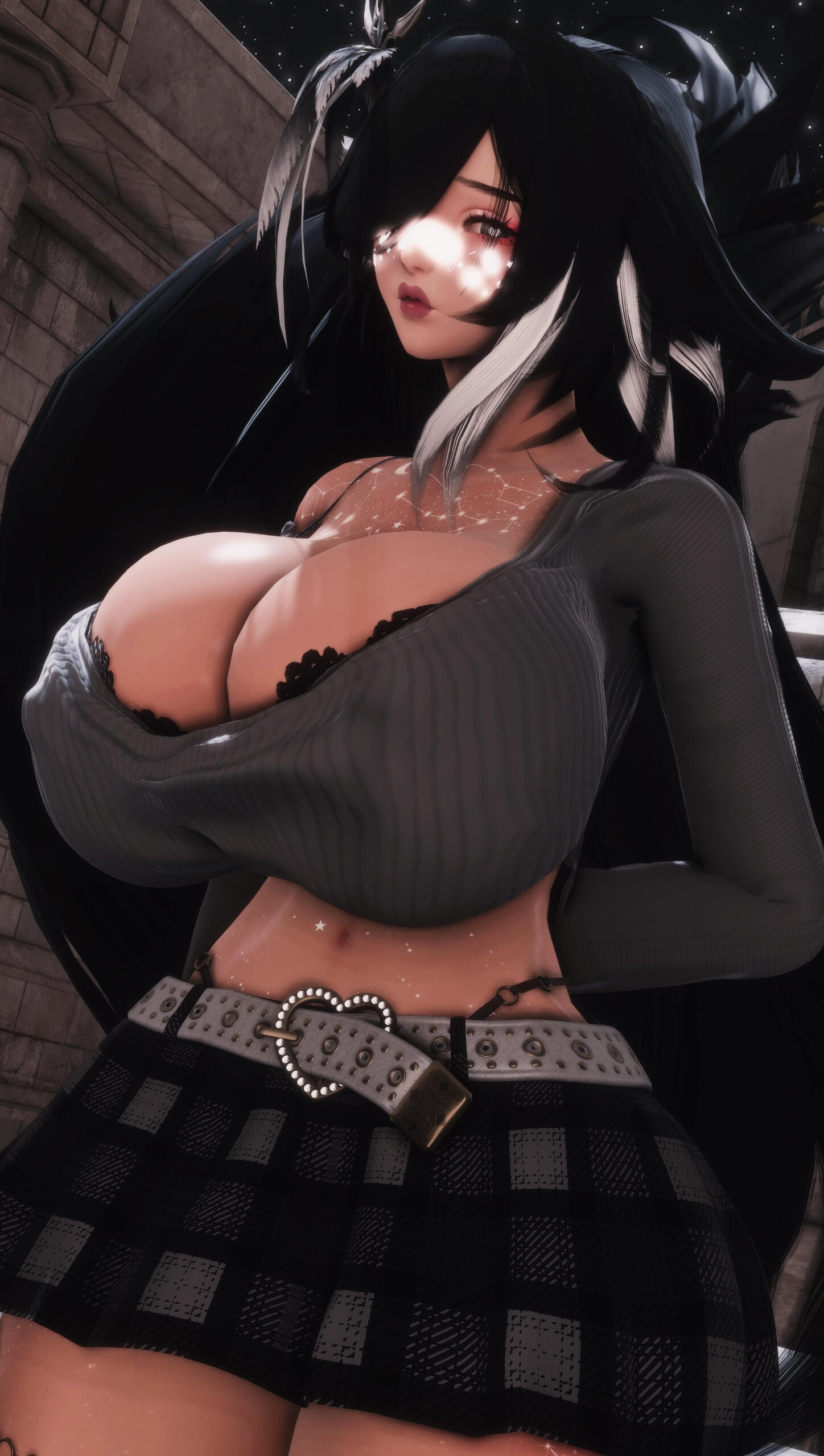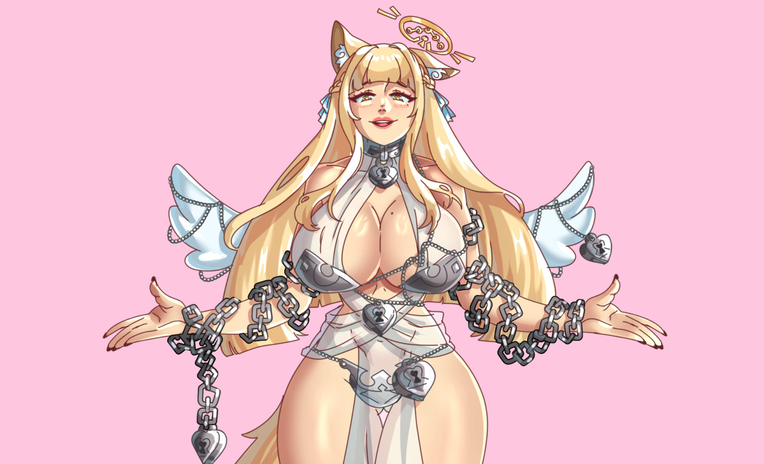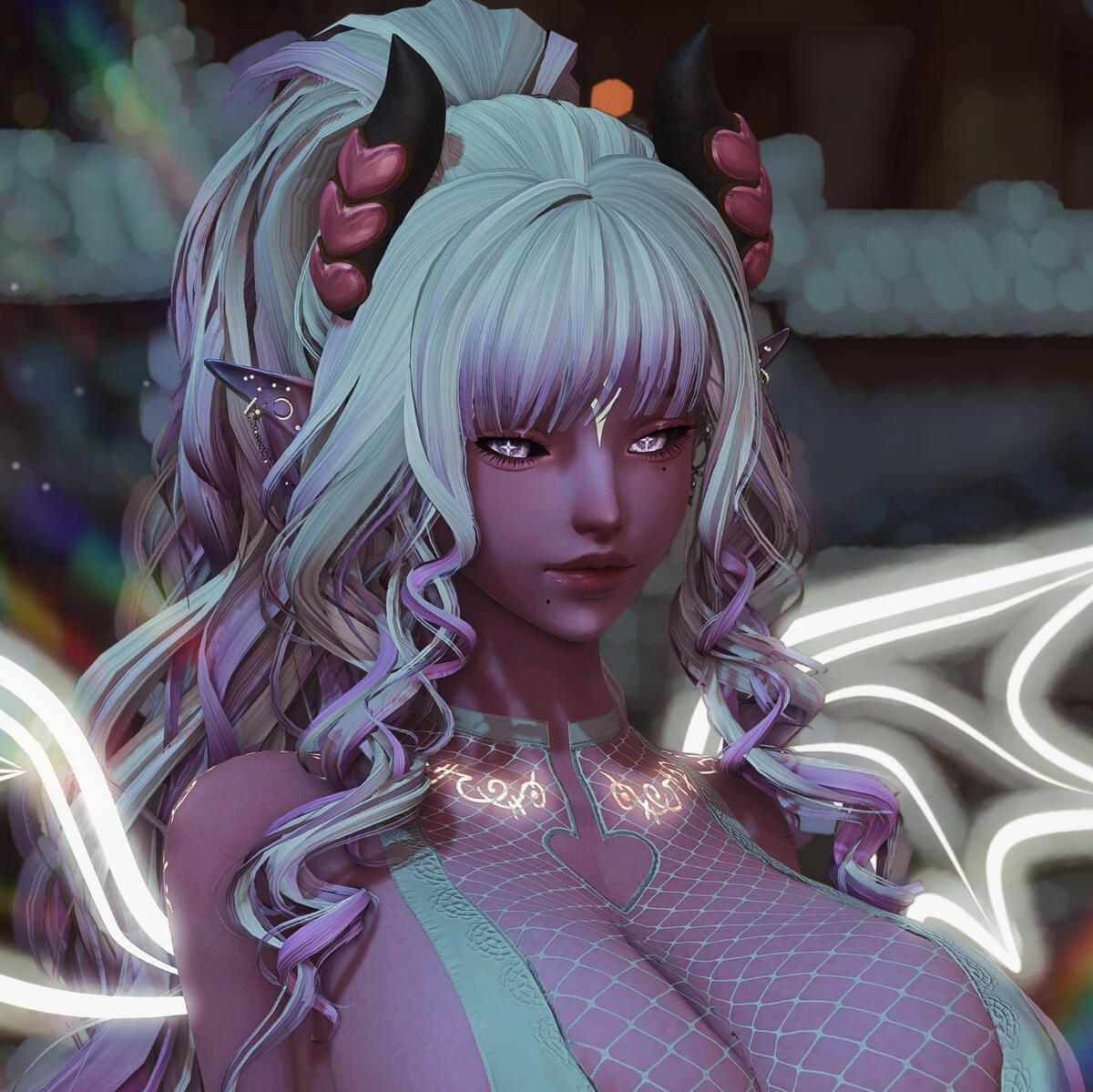 Lilith was a rather rude and cruel succubus who would often leech the life out of men and women she found interest in. However this would change when she had a run in with an angel hired to take her life.Lilith would do battle with said angel, resulting in the loss of her real wings. The angel would be cocky however, assuming she had won, casting an angelic blight upon Lilith's heart. This angelic blight would burn her away until she died, however due to some quick thinking Lilith would inscribe runes upon her body that would let her channel the angelic magic. She now fights using crudely performed angelic magic and has formed demon wings out of said magic.The angelic blight on her heart has changed her ways, she can no longer be as cruel as she once was and no longer takes pleasure in being the one to inflict pain. She now enjoys being the one to give up control, but still craves sexual desire being a succubus.