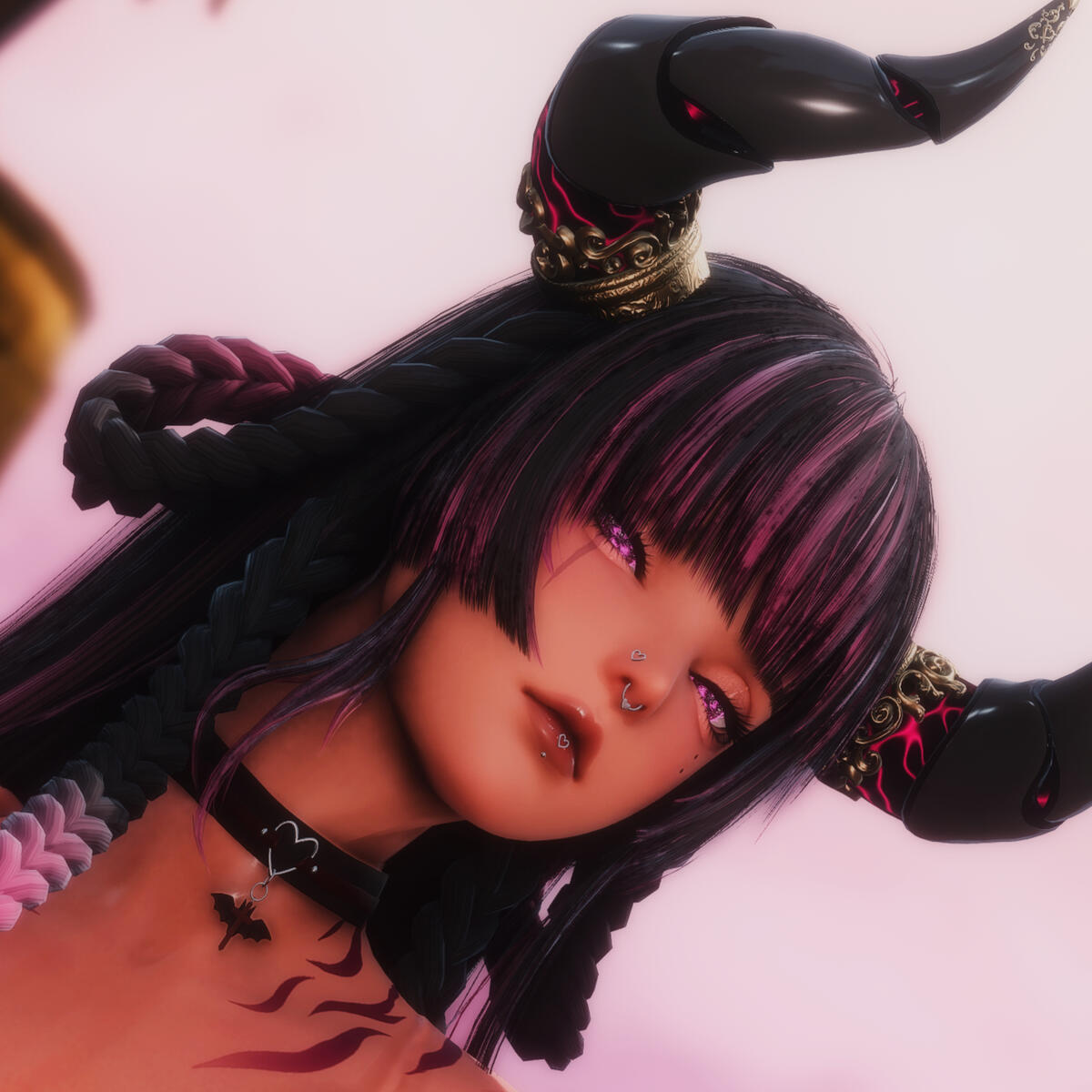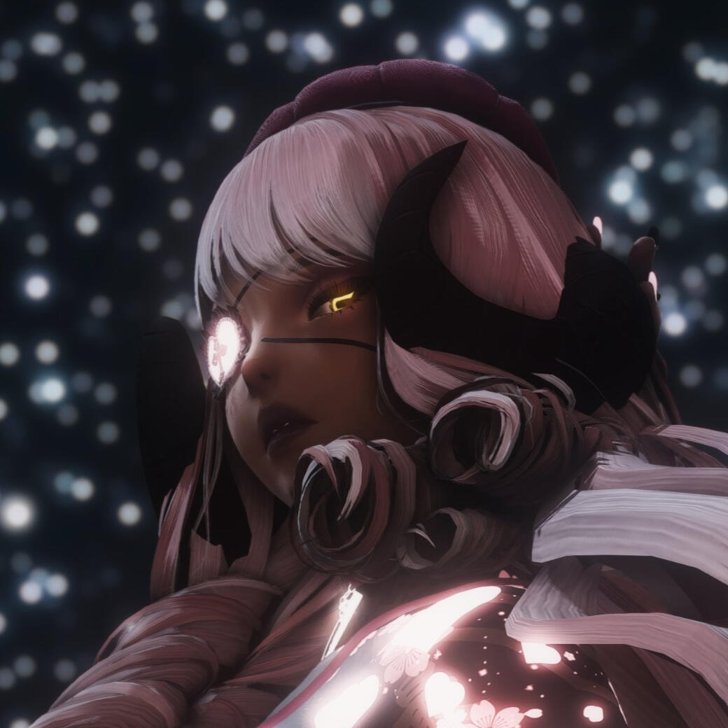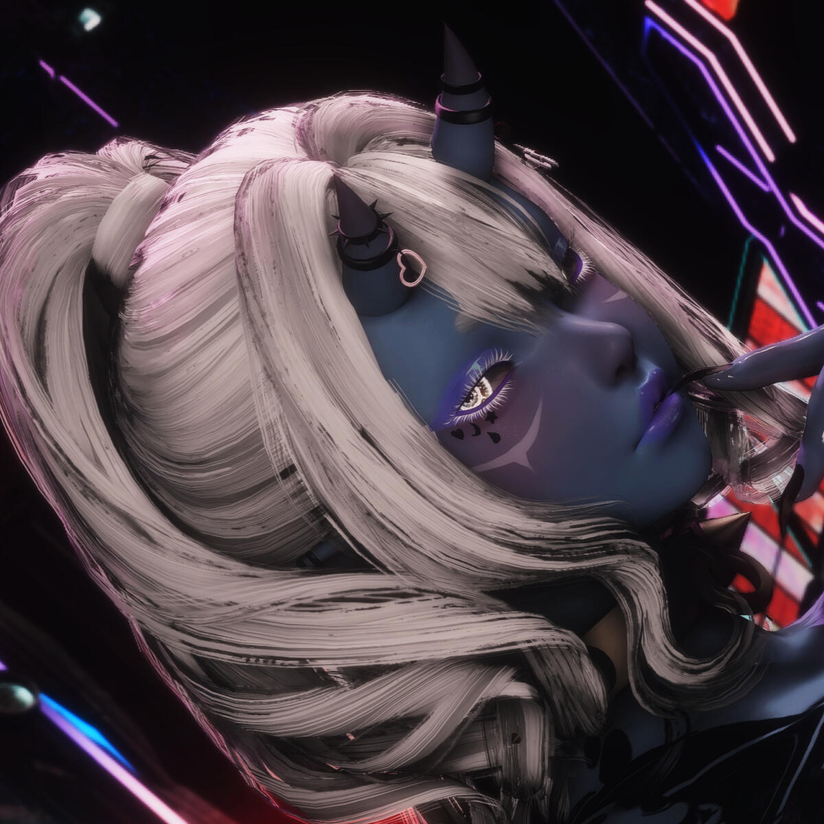 Pudding is a demon from the void. She grew up within it and would prey on the flesh and souls of humans who wound up inside. Through eating the bodies and souls of those she beat in combat she gained a more human like form, though not entirely. She retained her large curled horns and goat-like eyes as well as the glowing parts of her body and a nasty pair of fangs.During a run in with another demon she lost her eye, feeling the first moment of true fear she would flee, and use a large chunk of her aether to summon forth a portal in the human realm where she now hides until she can regain her aether supply.During her time in the human realm she's developed seamstress skills becoming known as one of the top seamstress' in the country. She's most well known for her ability to weave the wearers very aether into the clothing itself, making it more comfortable for the user, as well as letting people more easily access their aether deposits.