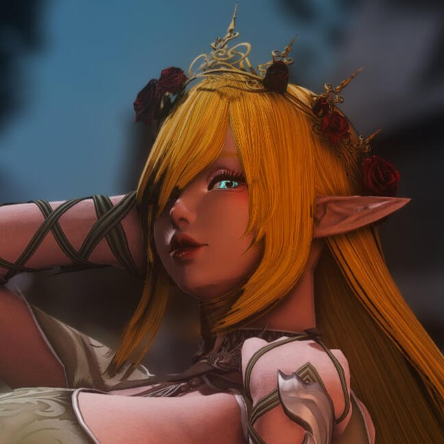 Aurelia is the princess of an elven kingdom. Born to the king and queen and next in line for the throne. However she's always been a bit adventurous and enjoyed exploring more then actually being a noble. However during an exploration of her castles dungeons she found a long forgotten passageway covered by a large stone. Using some magic she would crumble the boulder and further explore, finding various monsters had made their homes inside these long forgotten caverns.In secret she would go there a couple times a week, however one night she would find a rather large chest. Unfortunately for her, this was a cursed mimic in disguise.Upon inspecting the chest Aurelia would be enveloped by it, having it's way with her before branding her with a lust mark, and spitting her out before teleporting away to an unknown area. Due to this mark aurelia has an intense desire for sex, causing her to almost always be horny. She hunts for the mimic to undo the curse but has yet to find any traces on it's location after the teleportation.During night she goes by the fake name of "Iris" often visiting the slums to find easy targets to fulfill her sexual desires and intense lust.