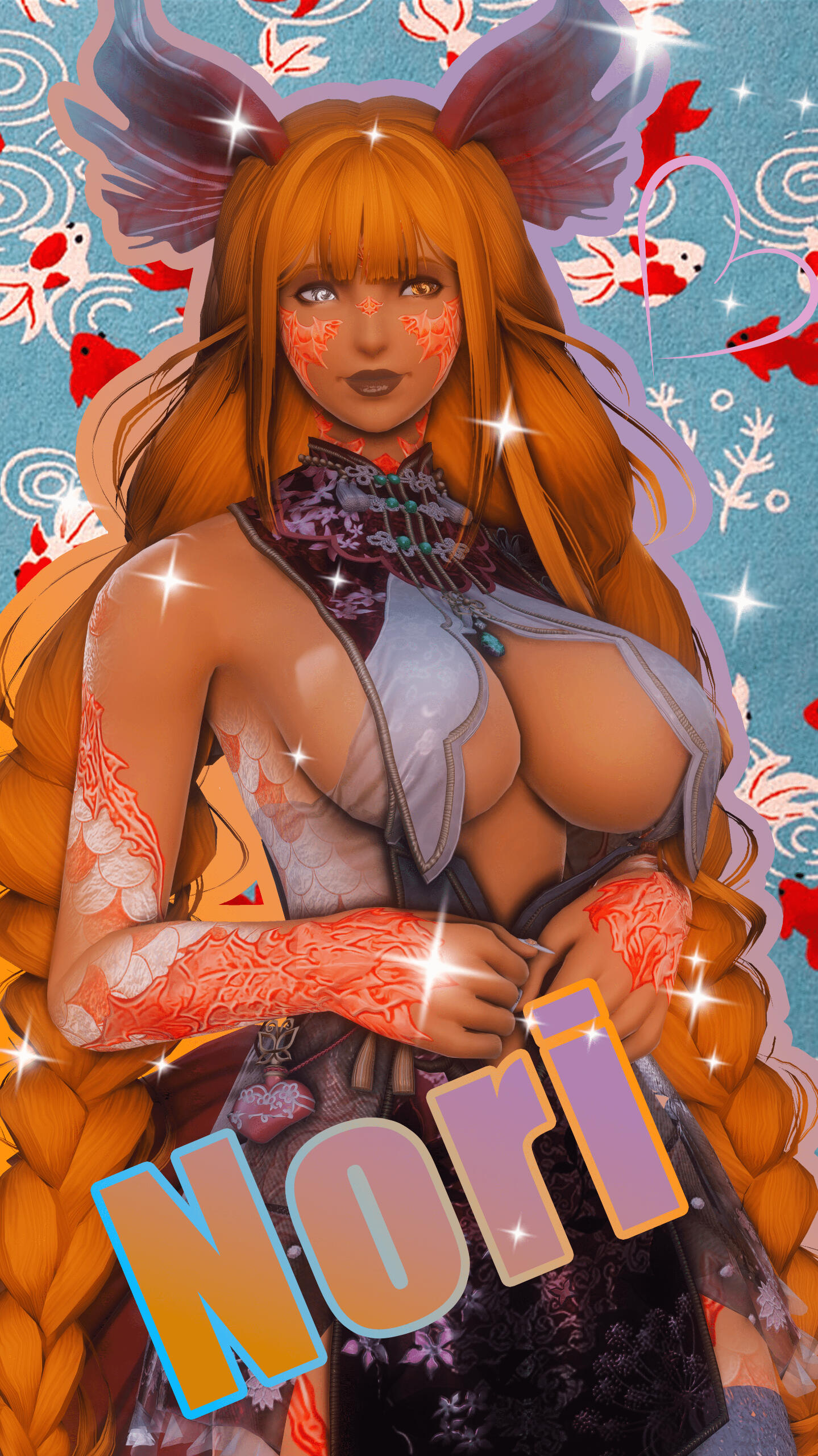 Nori is the run-away princess from a kingdom koi fish. Said kingdom is very secretive and resides in a massive underground cavern where the only entrance to it is underneath a massive whirlpool. Only those from the koi kingdom know how to get around the whirlpool safely without being torn to shreds by its powerful current.Legend of the koi kingdom says once every thousand years a great danger will present itself, and those born with the whirlpool eyes will prevent said calamity. Nori was born with those eyes, setting her as the chosen one. However with the duties of being the chosen guardian, as well as the princess she fled her country to get away from it all. She deeply regrets this choice and is too afraid to return to her homeland, fearing that the calamity happened and she failed her kingdom.