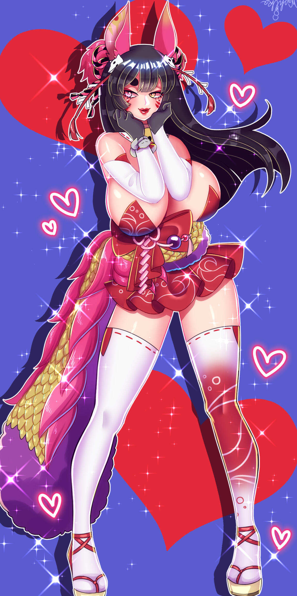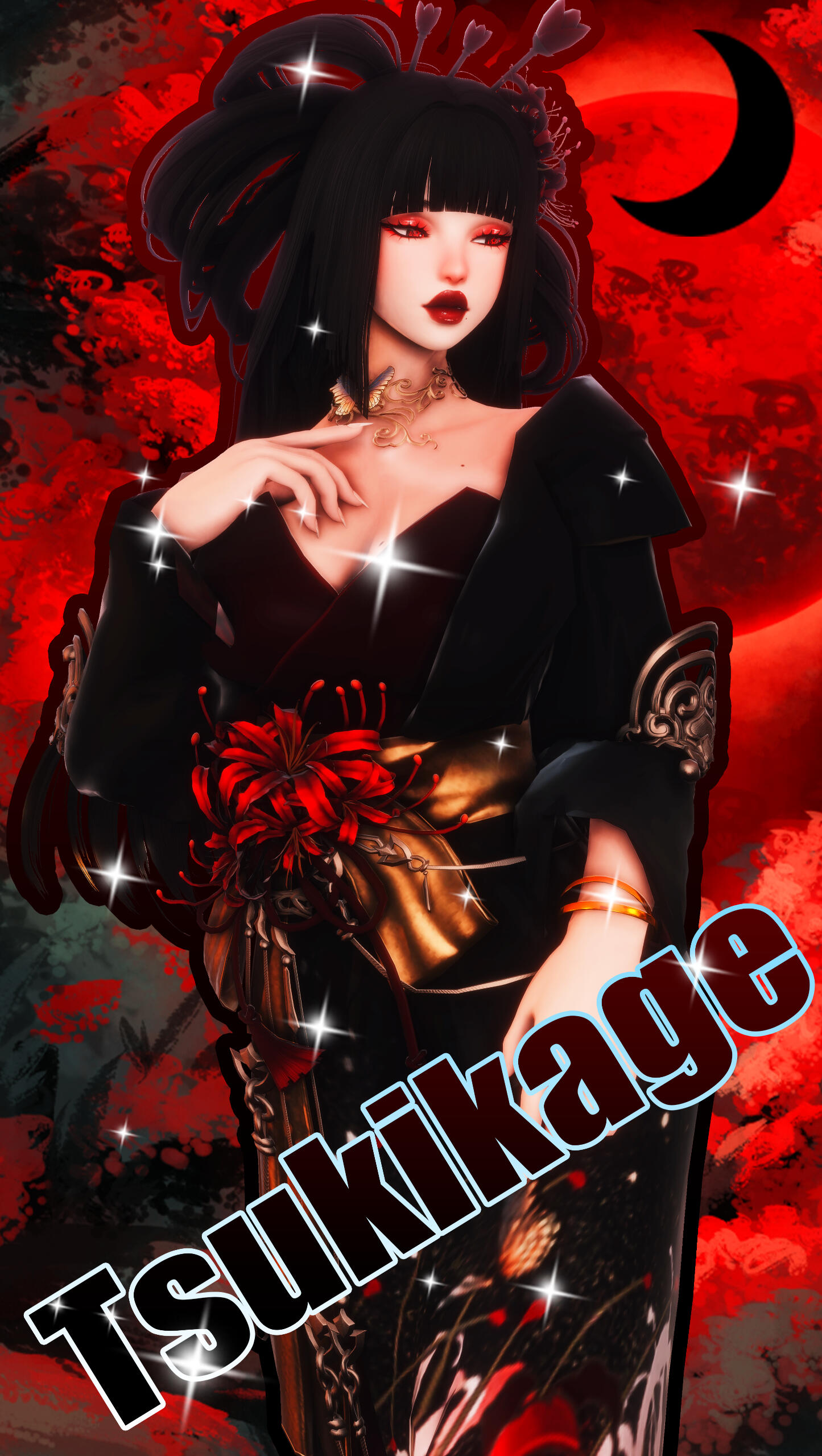 It's said once every thousand years a new priestess is born from the moons radiant light, granting them extraordinary powers over other spirits as well as someones fortune.Tsukikage is one of these priestess', born during a blood moon further enhancing her powers.. She's said to be extremely lucky and able to easily control other spirits, while also having some minor control over mortals as well due to her enhanced powers.She's both revered and respected by other lunar priestess', her power shadowing the others but she keeps herself in check and quickly becmae the head priestess.She's known to indulge in more human affairs from time to time, coming to work in a brothel, specifically Hanakos brothel, where she's become second in charge.