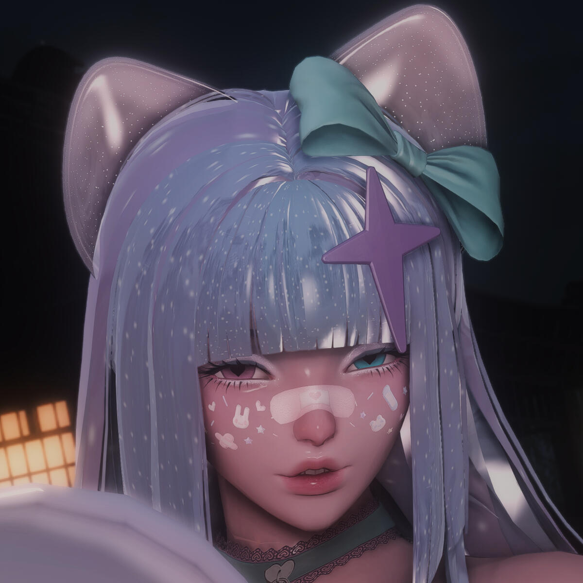 Celeste is a living constellation, one shaped like a fox. She's eons old and lived in the bounds of outerspace watching on people from far in the sky. Growing interested in mortal affairs she would manifest herself a human body to visit people down on earth.Her transformation was sloppy and hastily made though as she wanted to get down ASAP. This caused her hands to still resemble space, as well as her right eye to be missing a pupil entirely. To hide this she chose a long hair with bangs that would cover her eye, thinking of her flaw as something to be hidden.