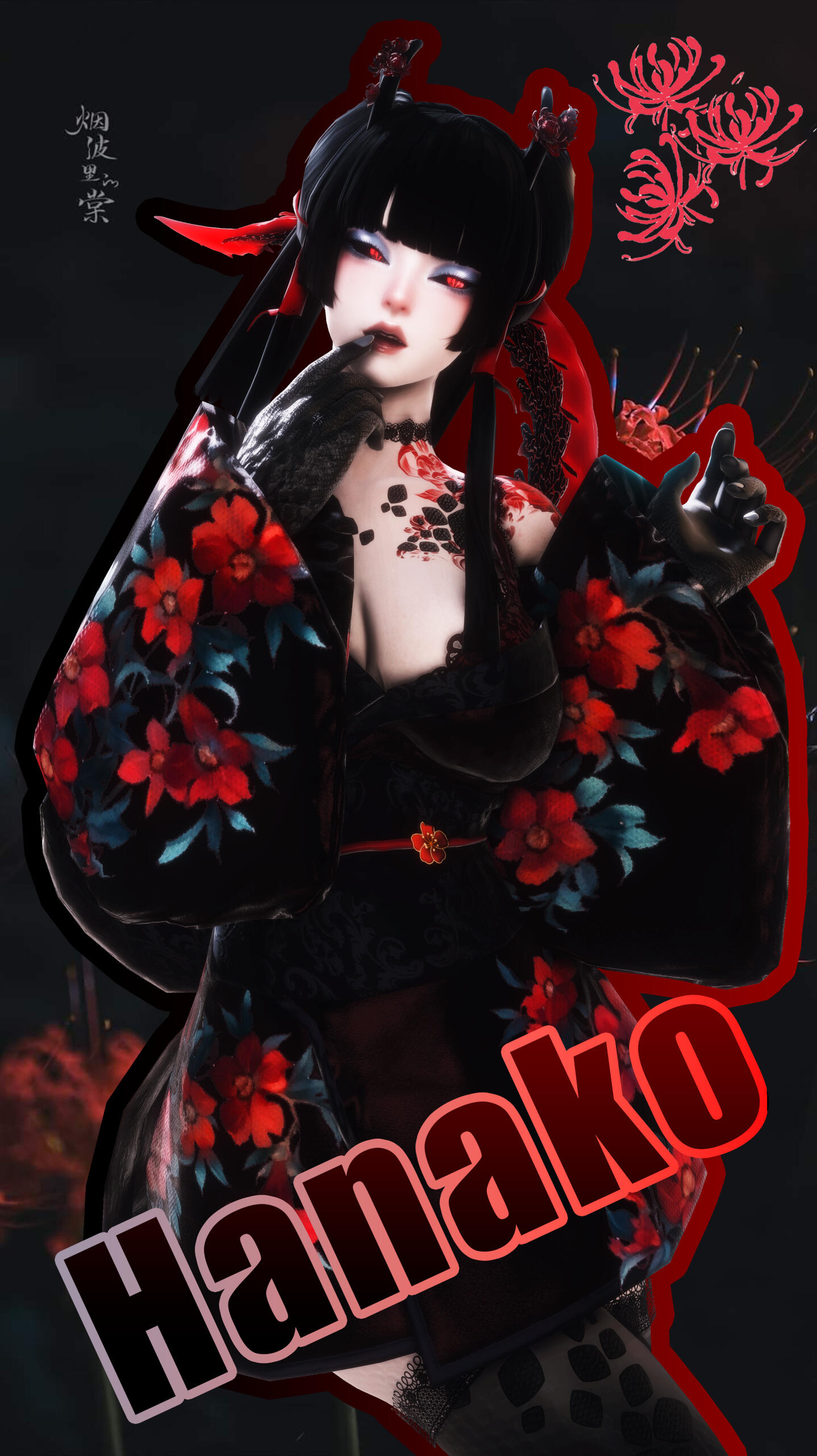Hanako is a dragon born to a rare species of them known as floral dragons.These dragons often gain control over specific elements relating to their flower that they're born with.An exceptionally rare subspecies of these floral dragons is known as the higanbana dragon. These ones are only born once every thousand years and have control over darkness and blood.Due to all previous incarnations of the higanbana dragons being evil and causing great misfortunes within the tribe, all higanbana floral dragons are cast out at a young age and not properly taught how to wield their elemental control.This includes Hanako, though barely able to control blood and at most uses it for minor puppeteering on people she dislikes she eventually found a home working as the head courtesan at a brothel.