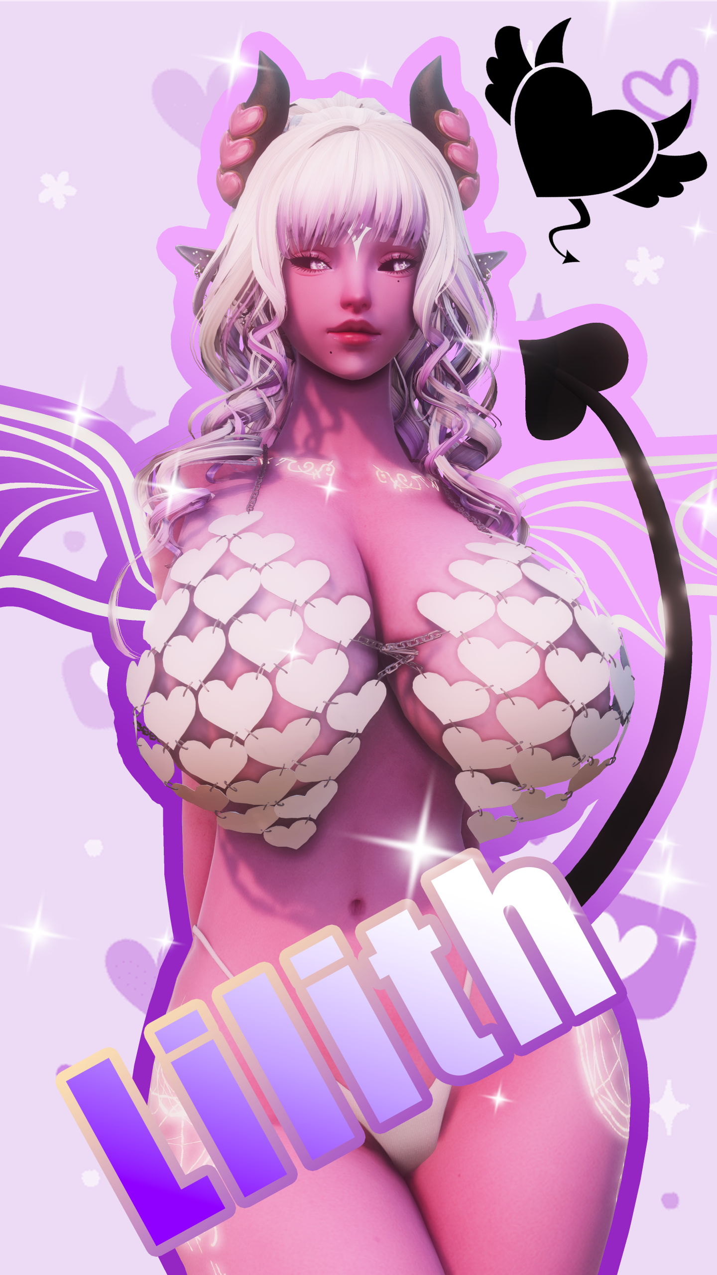 Lilith was a rather rude and cruel succubus who would often leech the life out of men and women she found interest in. However this would change when she had a run in with an angel hired to take her life.Lilith would do battle with said angel, resulting in the loss of her real wings. The angel would be cocky however, assuming she had won, casting an angelic blight upon Lilith's heart. This angelic blight would burn her away until she died, however due to some quick thinking Lilith would inscribe runes upon her body that would let her channel the angelic magic. She now fights using crudely performed angelic magic and has formed demon wings out of said magic.The angelic blight on her heart has changed her ways, she can no longer be as cruel as she once was and no longer takes pleasure in being the one to inflict pain. She now enjoys being the one to give up control, but still craves sexual desire being a succubus.
