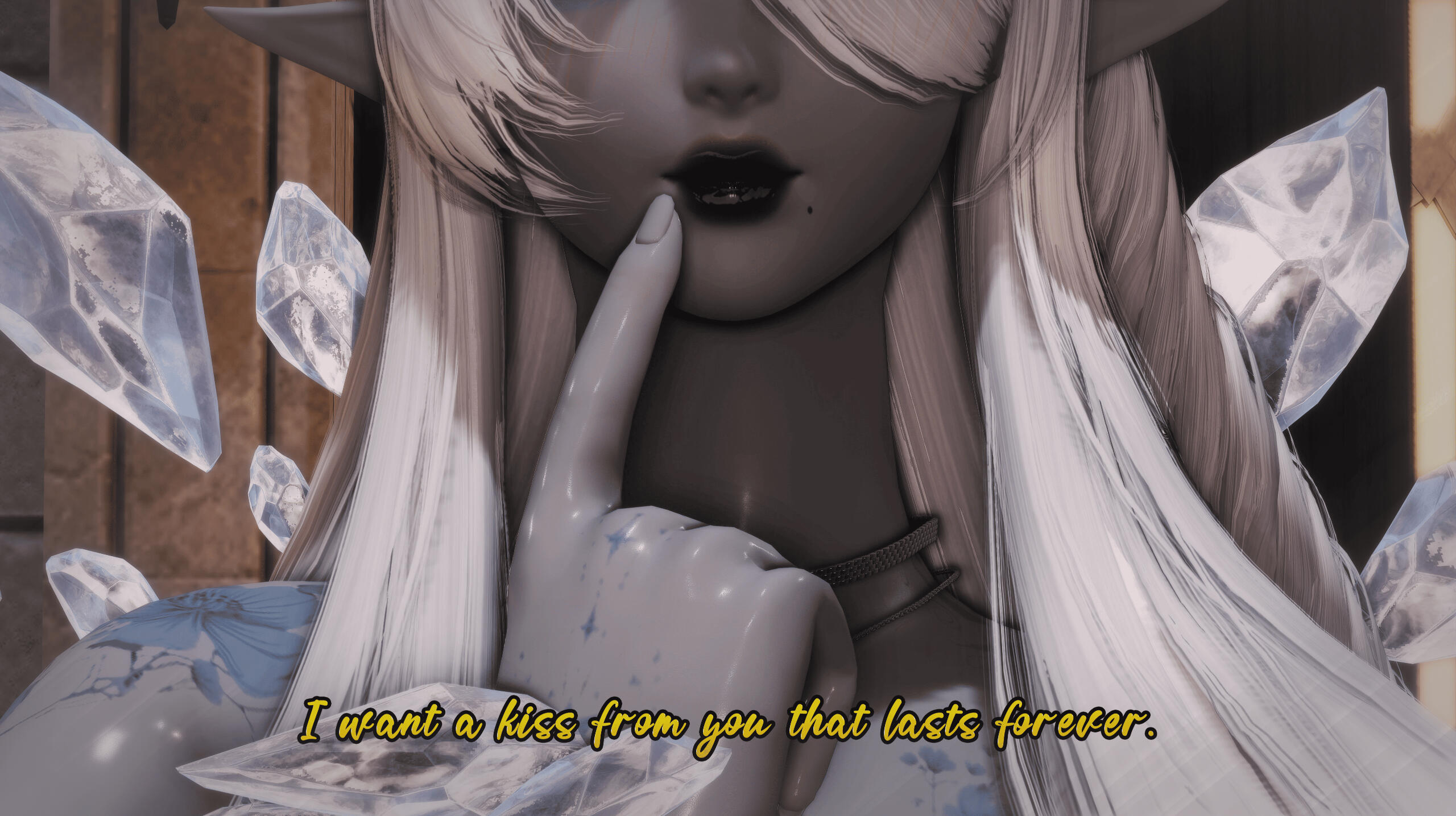 Aurelia is the princess of an elven kingdom. Born to the king and queen and next in line for the throne. However she's always been a bit adventurous and enjoyed exploring more then actually being a noble. However during an exploration of her castles dungeons she found a long forgotten passageway covered by a large stone. Using some magic she would crumble the boulder and further explore, finding various monsters had made their homes inside these long forgotten caverns.In secret she would go there a couple times a week, however one night she would find a rather large chest. Unfortunately for her, this was a cursed mimic in disguise.Upon inspecting the chest Aurelia would be enveloped by it, having it's way with her before branding her with a lust mark, and spitting her out before teleporting away to an unknown area. Due to this mark aurelia has an intense desire for sex, causing her to almost always be horny. She hunts for the mimic to undo the curse but has yet to find any traces on it's location after the teleportation.During night she goes by the fake name of "Iris" often visiting the slums to find easy targets to fulfill her sexual desires and intense lust.